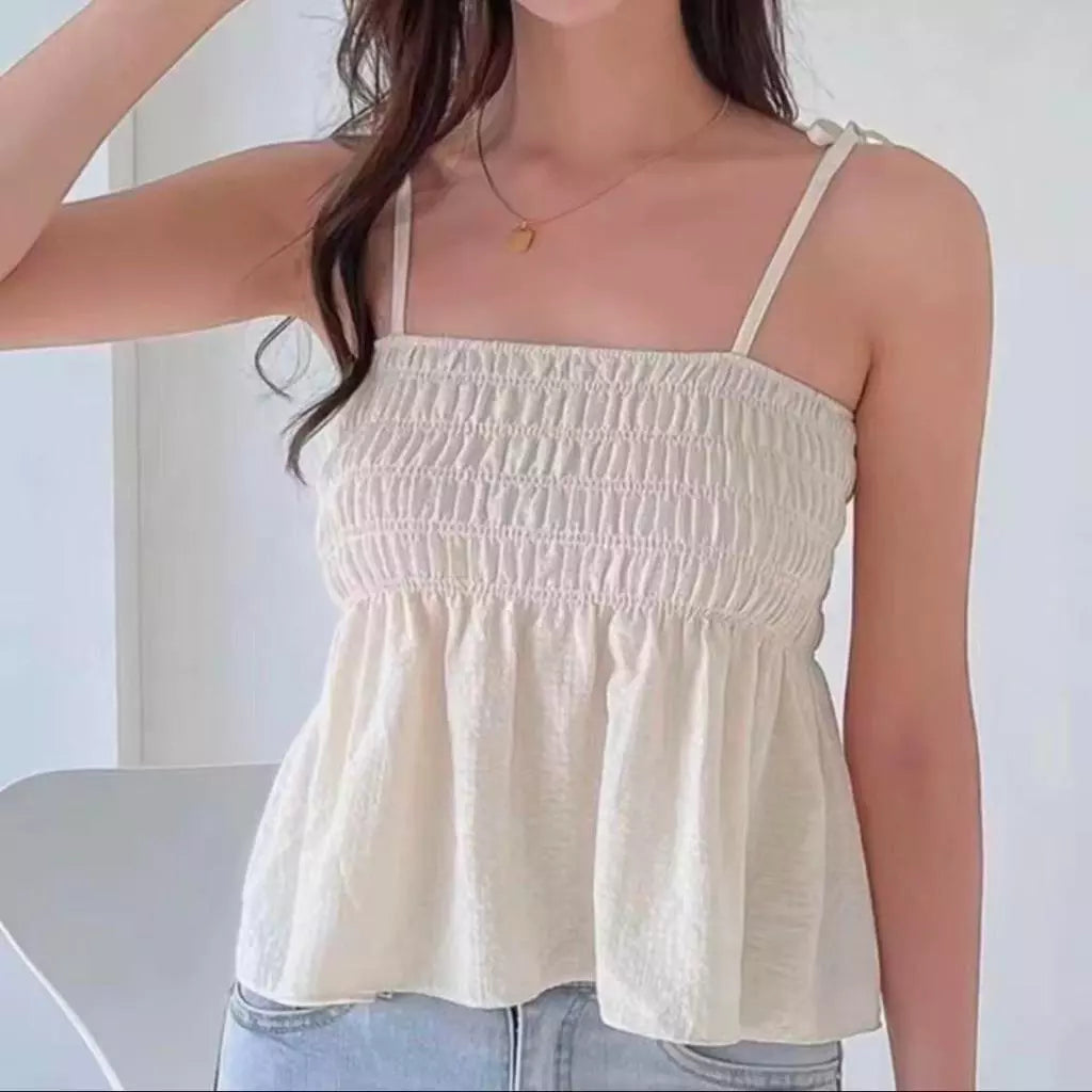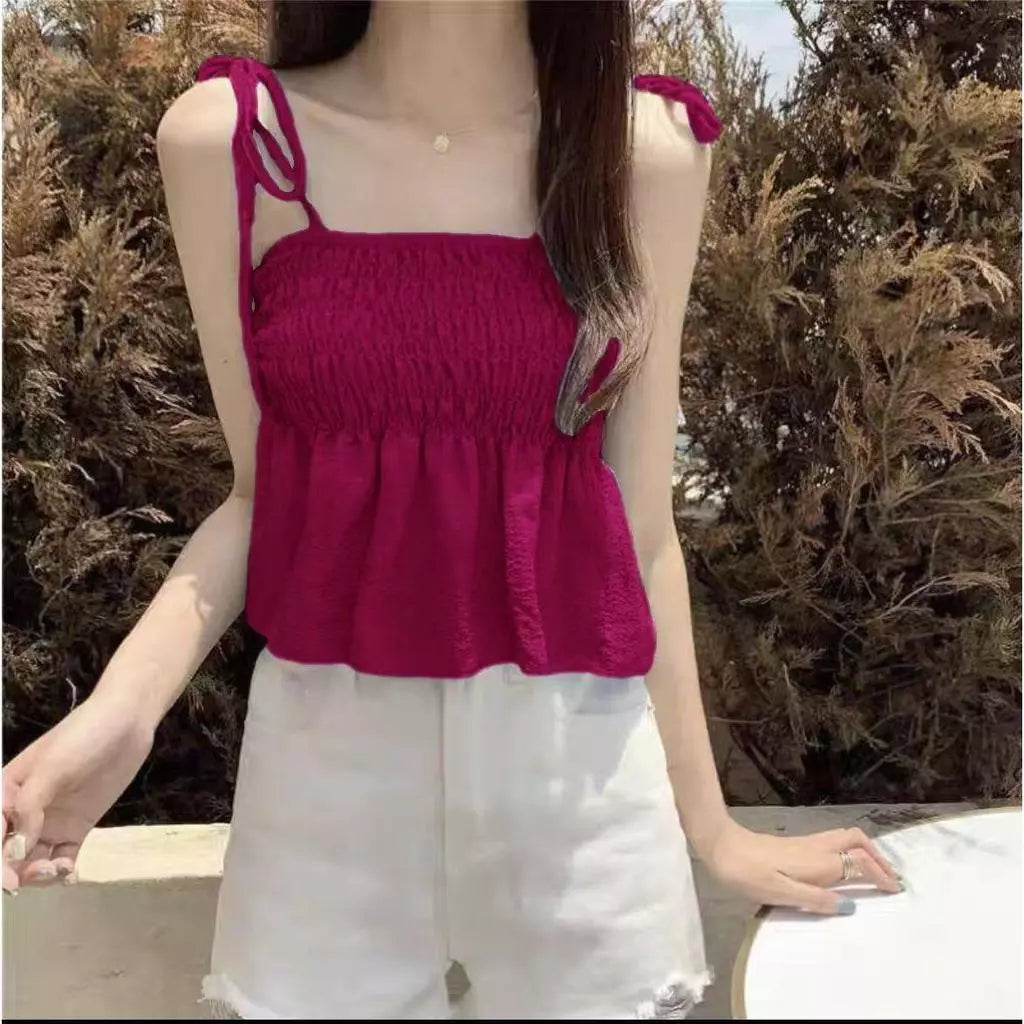 1026-Shirred Ruffle Trim Adjustable Shoulder Strap Fit Size (S-XL)