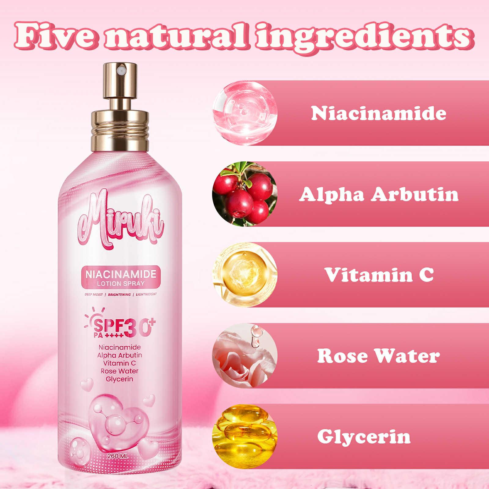 Miruki Niacinamide Lotion Spray, Deep Moist, Brightening, Lightweight, with SPF 30 PA++++