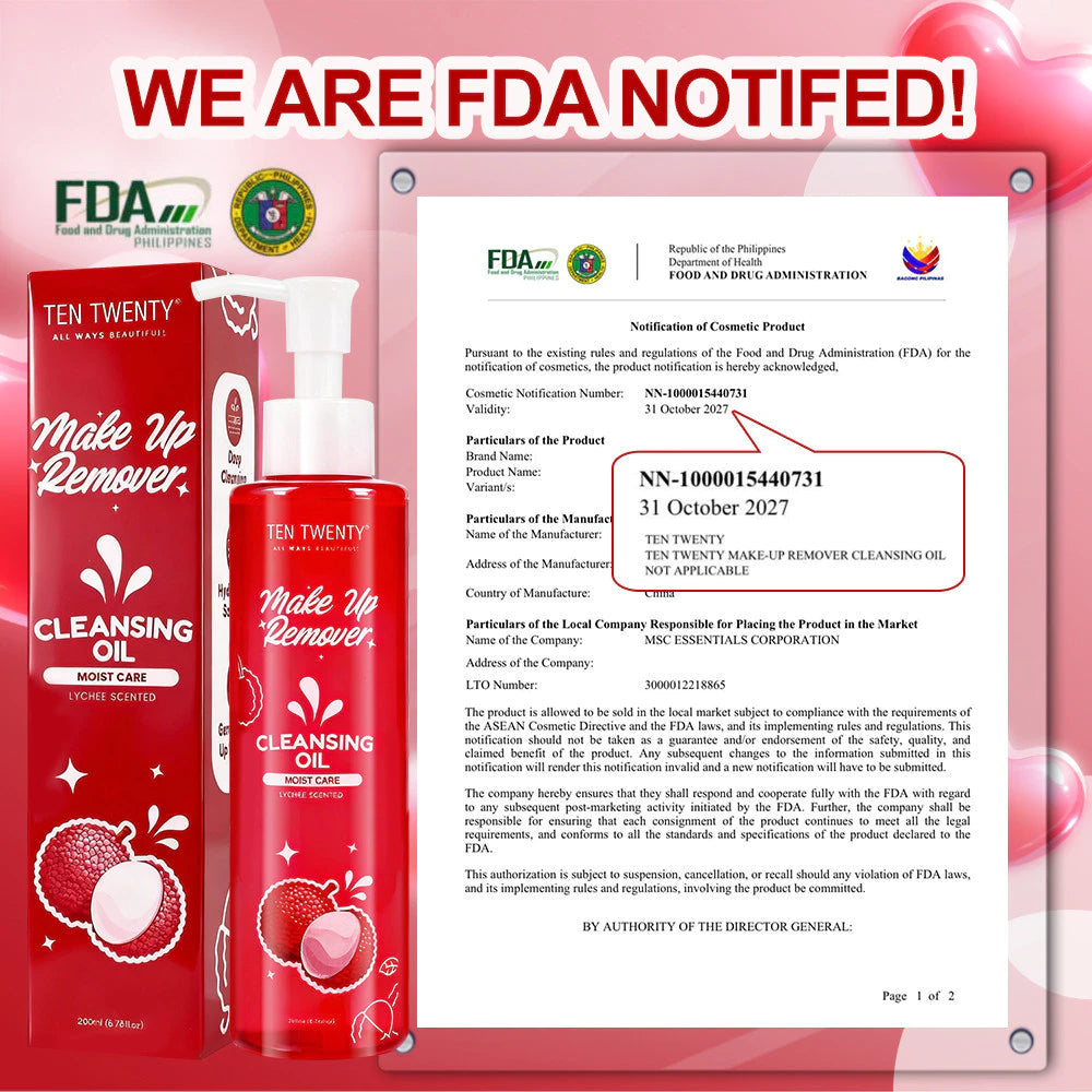Sensitive Skin Makeup Remover - TEN TWENTY 200ml Lyehee Scented Gentle Deep Cleansing Oil